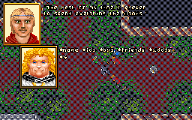 I think the biggest challenge is getting both modes to work side by side. Implementing the new mode while still supporting the existing original interface. There are also issues with the viewing distance. Some areas in the game work best when viewed on an 11×11 tile window. The keyboard driven conversation interface was quite challenging to adapt too. Luckily, the original developers included the highlighted help keywords. This enabled us to skim them off while parsing the dialog to present back to the user in a mouse based interface.