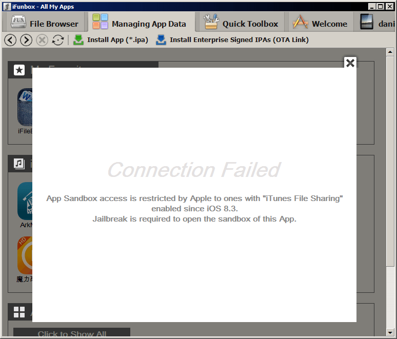 Apple has changed security settings in iOS 8.3 that prevent file managers and transfer utilities such as iFunBox, iTools, iExplorer, iBackupBot and PhoneView from gaining access to app directories on an iPhone, iPad or iPod touch. The change breaks current versions of transfer utilities for OS X and Windows, forcing many developers to release new versions of their software with workarounds that restore at least partial sandbox access.